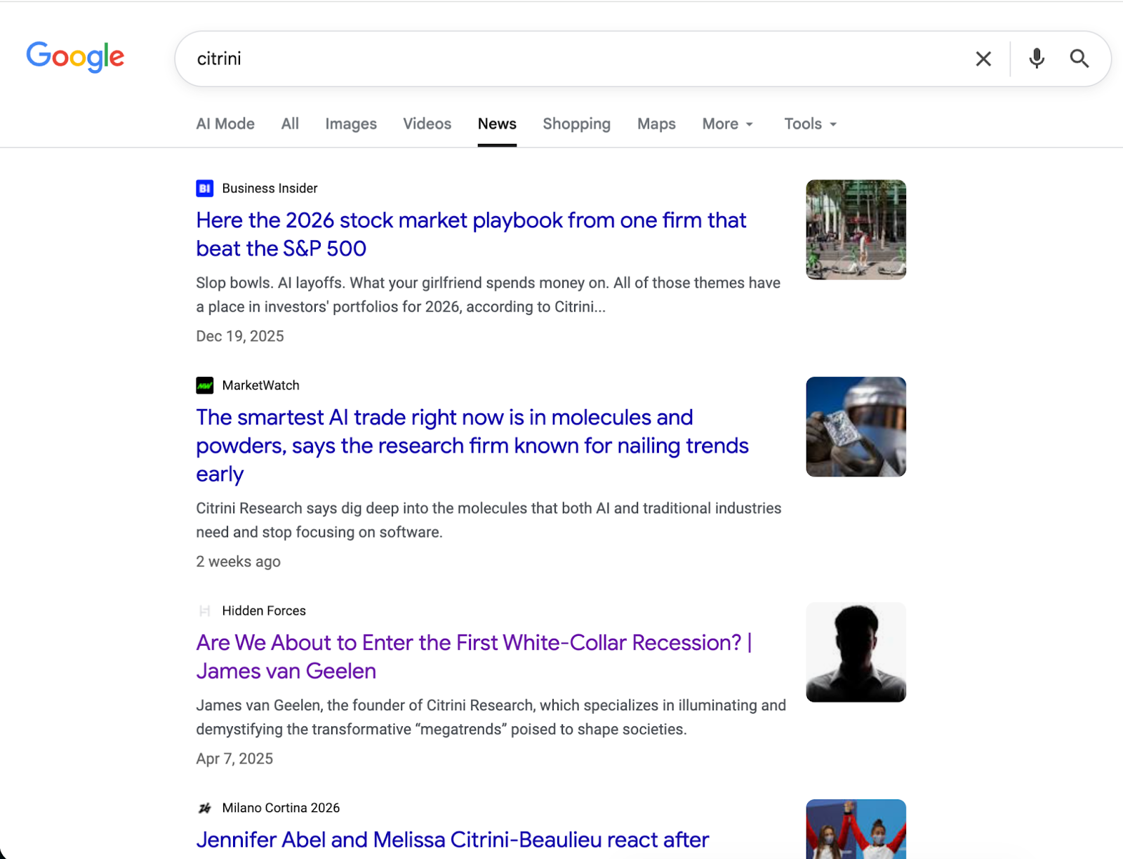 Sure, the firm had some press here and there over the past few years, but it was sporadic at best. Here’s a snapshot of the Google News hits for Citrini before the research report: