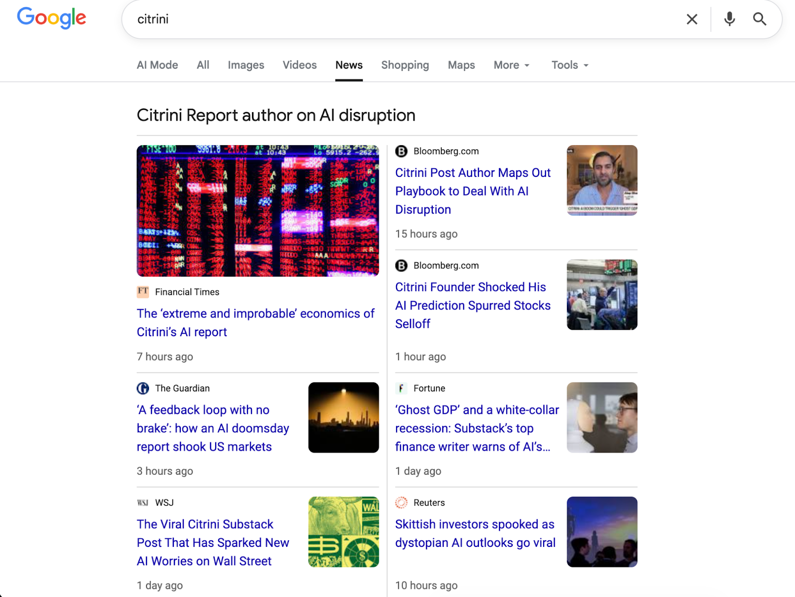 But get a load of the coverage after. Just five days after publishing, Citrini is still in the news cycles and earning an increasing number of backlinks from coveted news publications.